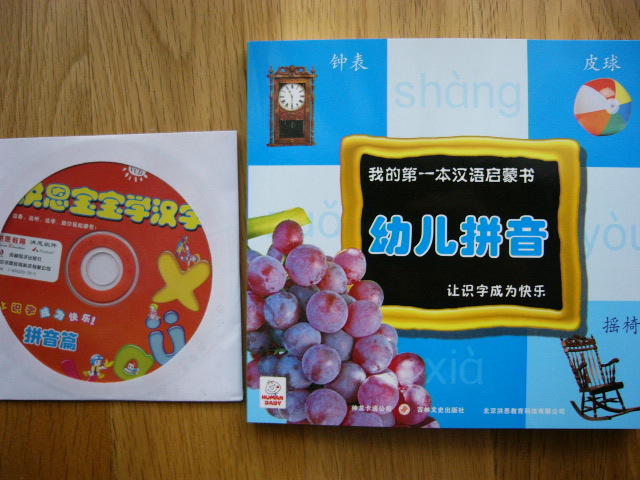 幼児用中国語教材(原題:幼児識漢字、学齢前幼児シリーズ叢書)漢字に親しむための教材で、すべてにピンイン表記がついています。教科書を見ながらVCDで聞いて学べるのでとても効果的。