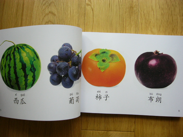 幼児向け中国語図鑑。動物や生活にかかわる物品、食べ物などなど、さまざまな言葉を中国語で学べます。全単語にピンイン表記がついて、非常に分かりやすくなっています。