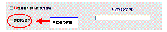 下記の「10元包装」は北京限定なので、利用できない。 是否要发票 領収書なので、必要な場合はチェックを入れること。チェックを入れると入力ボックスが現れるので宛名を入力する。(各注(30字内)は備考欄なので領収書の宛名入力はしないこと)